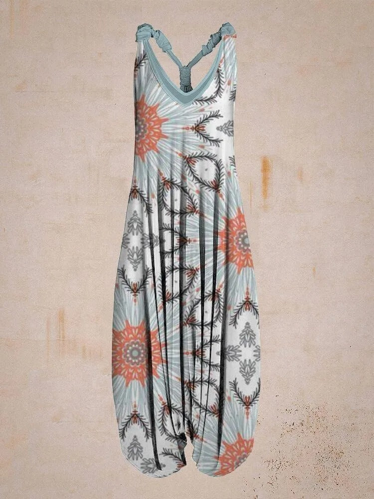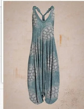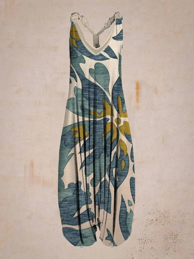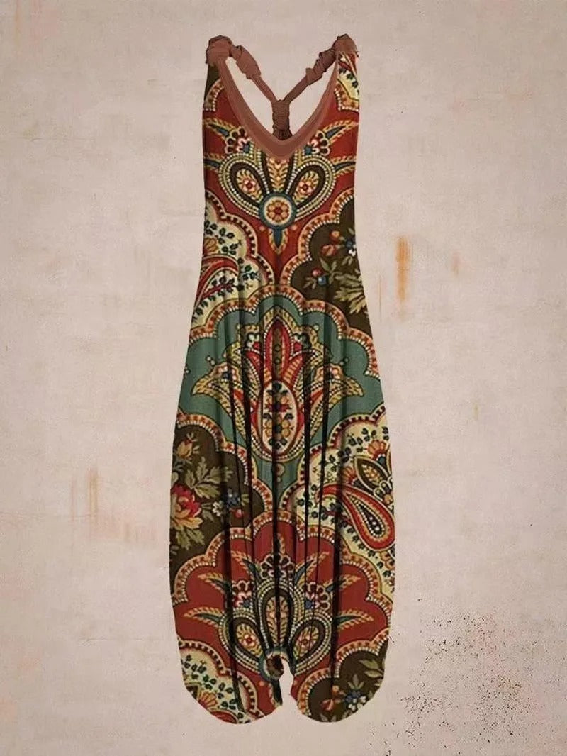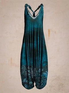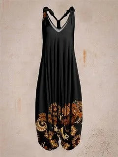 A sleeveless floral romper with a vintage feel. Light and comfy for summer, with a flattering high waist. Easy to wear for casual days or going out.